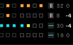 The heart of Atlantic Waves is a step sequencer: a large matrix acting as the score, which can be created and modified in real time by both participants and is projected behind the performer on stage. This sequencer allows notes to be drawn into a grid on screen. The grid consists of 15 rows and 32 columns, providing 15 independent percussive instruments. Each row can be activated and controlled independently.