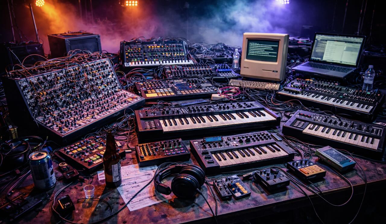 'Photo' above shows a typical stage setup of electronic music according to a certain LLM image generator